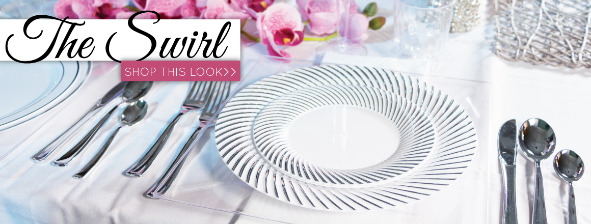 The Swirl Collection is a unique array of disposable plastic plates designed specifically for the bride who is on a budget yet wants to add elegance and flair to her wedding party. |